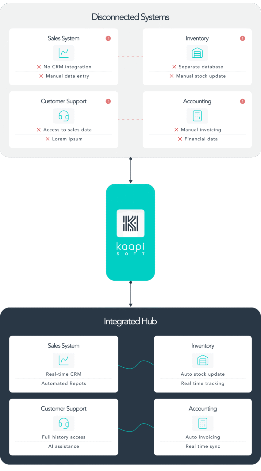 Kaapisoft is a technology partner specializing in operational intelligence and system automation. We help growing companies turn operational friction into smooth, efficient workflows by connecting and optimizing the tools they already use. This reduces manual work and provides the actionable insights needed to continuously scale and improve business operations.